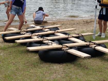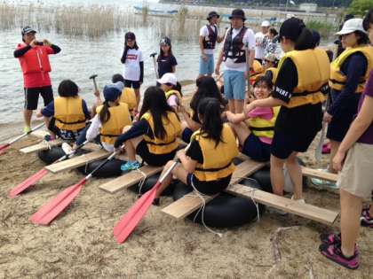 > いかだ完成しました。出発です。