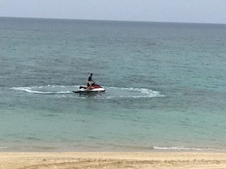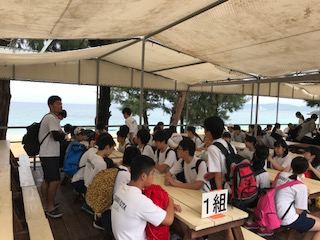 マリンスポーツのビーチに到着です。晴れ間が見え、コンデションも上々です。