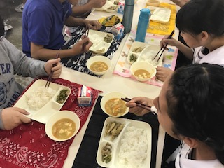 泊行事も終わり、全学年が揃っての親子方式による給食をいただいています。3年生はチャレンジテストにむけて、頑張れ!