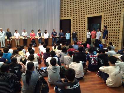 伊江島での入村式。お世話になる民家の方々と初対面です。