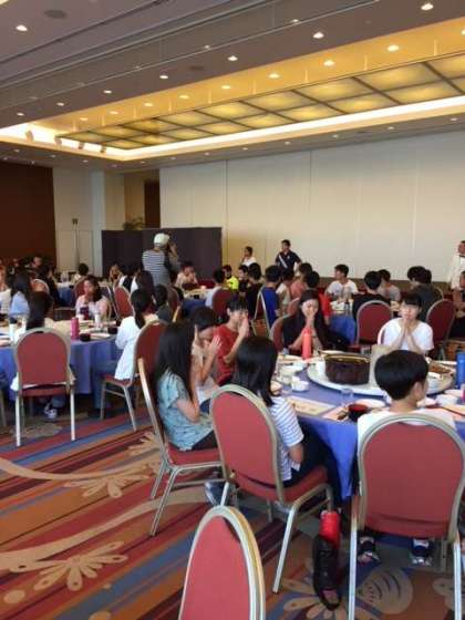 夕食の時間です。みんな笑顔で、しっかりいただいてます。