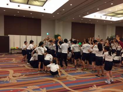 室内オリンピック、風船送りです。みんな一生懸命、仲良く、笑顔の時間を過ごしました。優勝したのは・・