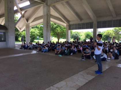 退市式を行いました。感謝の気持ちを込めて、みんなで島人ぬ宝を歌いました。