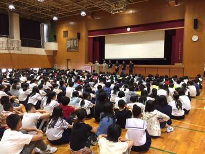 区役所、消防署、地域防災リーダーの方に来ていただき、DVDを使っての講演、その後、学年ごとに訓練を行いました。