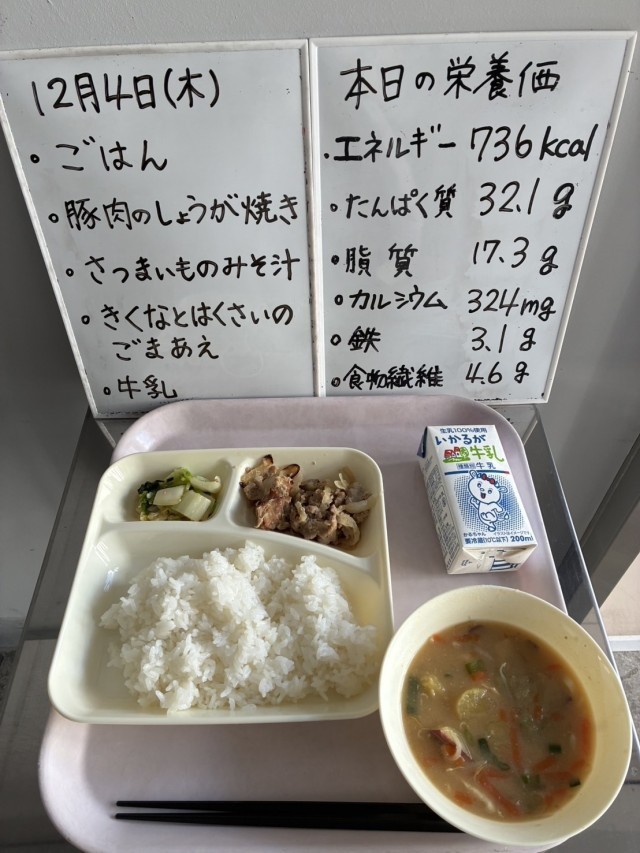 12/4(木)給食 豚肉の生姜焼き