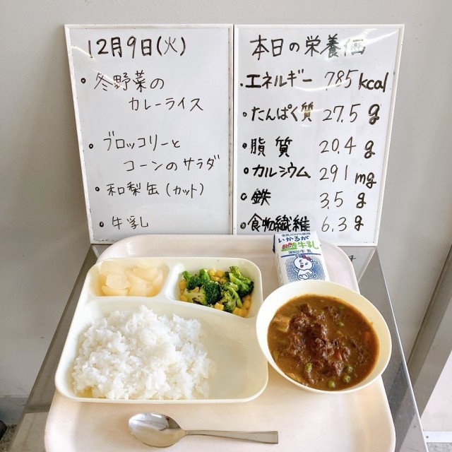 今日の給食には、大根、れんこん、ブロッコリーが使われています。