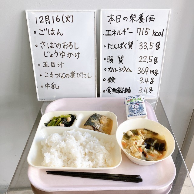 12/16(火)給食 さばのおろしじょうゆかけ