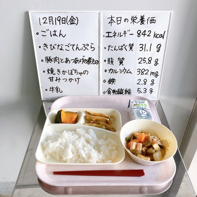 12/19(金)給食 焼きかぼちゃの甘みつかけ