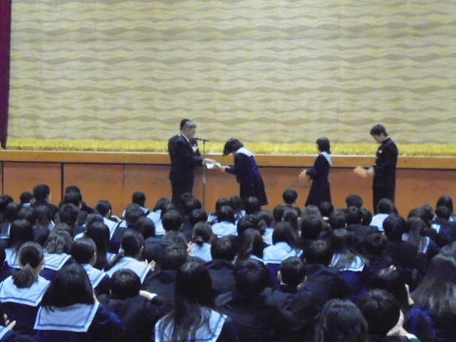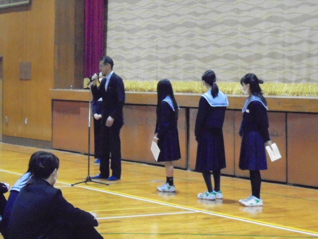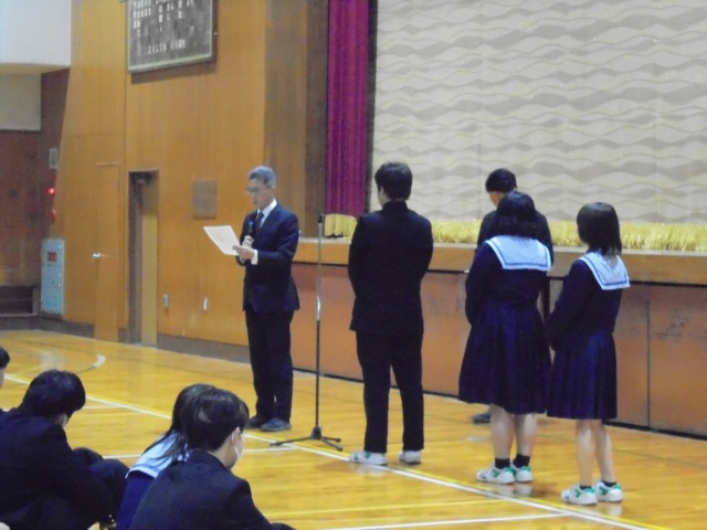 また校長先生より斎藤茂吉ジュニア短歌コンクールを受賞した4名の生徒への表彰も行いました。