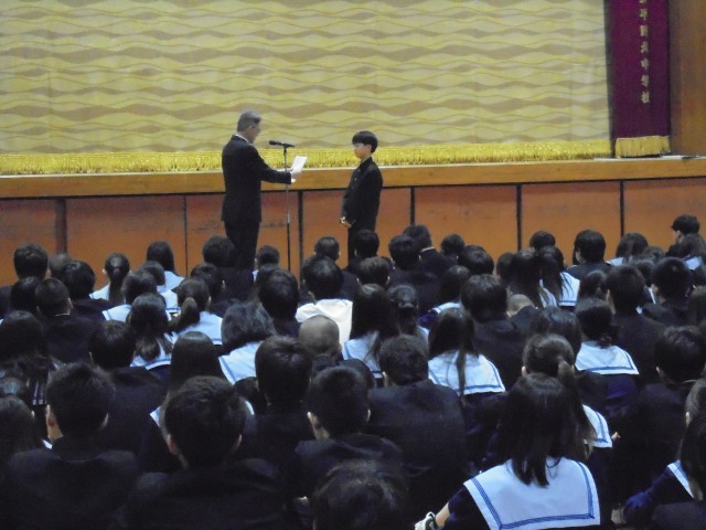 3月23日(月)平野区の安井副区長にお越しいただき、3名の生徒への読書ノート区長表彰が行われました。