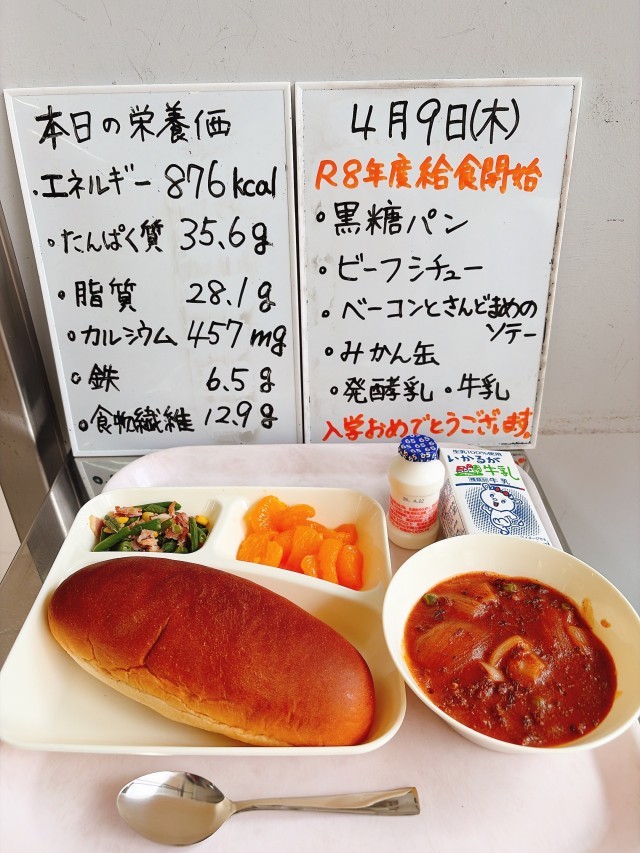 4/9(木) 令和8年度給食開始 ビーフシチュー