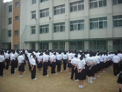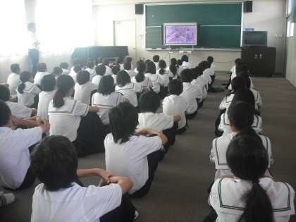 8月6日、広島の原爆投下の日にあわせて「平和学習」を行いました。学校長の講話のあと、広島に原子爆弾が投下された午前8時15分より、犠牲になられた方への1分間の黙とうを捧げました。その後は、各学年に分かれて、映像などを使い平和について学びました。