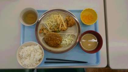 今日の夕食は「おろしハンバーグ&から揚げ」です。いただきます。