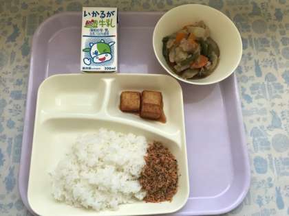 厚揚げの醤油だれかけ 紅鮭そぼろ でした。