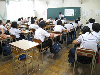 写真:道徳の研究授業のようす。
