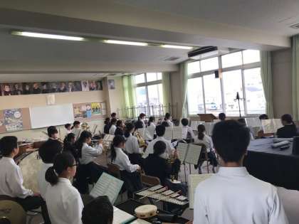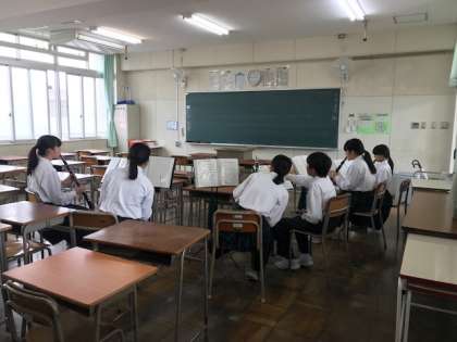 音楽室ではいっぱいになってしまったので、教室を借りてパートごとに練習をしています。本日まで家庭訪問だったため、午後の時間を有効に使って練習できました。