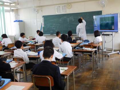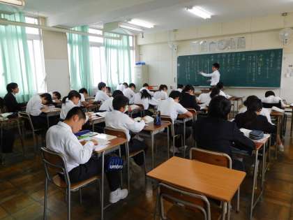 地震の単元で、南海トラフ地震が起きた時に、西成区には何秒後に地震が発生するのかをグループに分かれて計算していました。