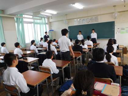 天下茶屋中学校では、終学活は学級代表が司会をして生徒主体で行っています。