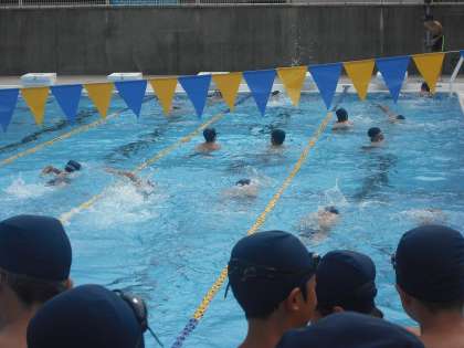 9月8日、1年生水泳大会を実施しました。どの生徒も一生懸命取り組み、クラス間で大接戦となりました。結果は次に示すとおりです。