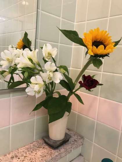 毎月地域のボランティアの方がそっと生けてくださってます。お花を見ていると、忙しい日常の合間にホッとした気持ちになります。