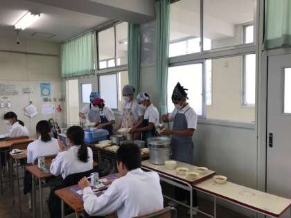 下の写真は2年生の配膳の様子です。