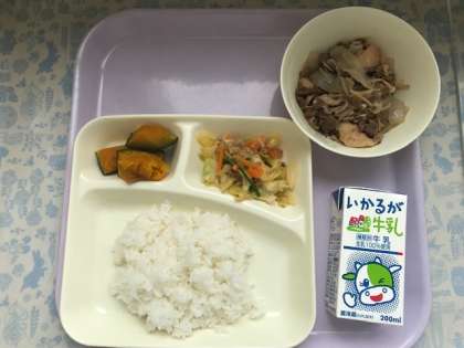 ご飯・牛乳・すき焼き煮・焼きかぼちゃ