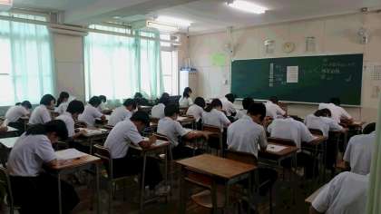 今日、3年生は「第1回実力テスト」を実施しています。日頃、勉強して身につけている力を十分に発揮して頑張ってください。