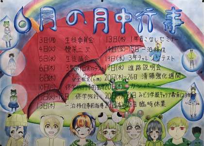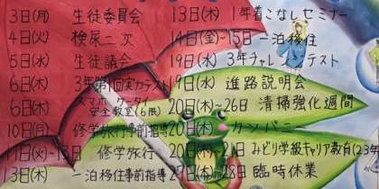 中央階段の掲示板に、今月の月中行事予定表を掲示しました。
