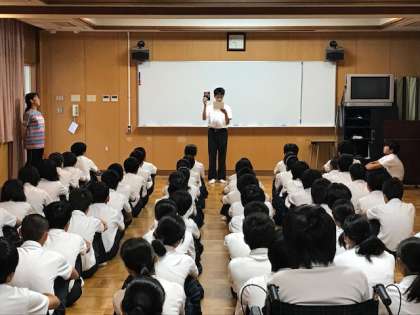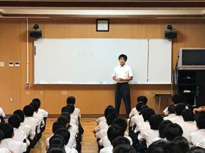 本日の2年生の学年集会は、生徒会役員からの話がありました。