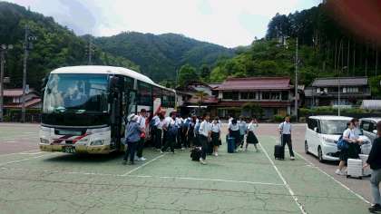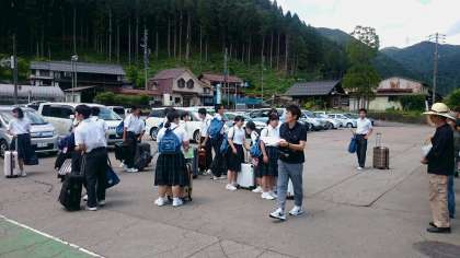 明宝コミュニティセンターに入村する生徒は現地に到着しました。