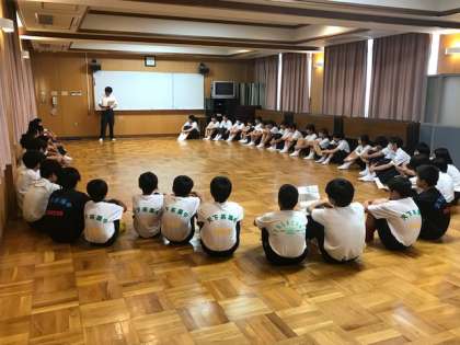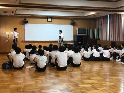 今日の放課後はレクリエーション係が本番を想定して練習を行いました。1年生の学級代表も来年のことを考えて見学をしました。またサッカー部、野球部、バドミントン部にもゲームに参加してもらい、予想以上に盛り上がっていました。一泊移住当日も成功するとよいですね。