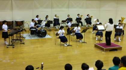 9月26日、吹奏楽部が「西成区更生保護女性会結成50周年記念式典」において、演奏を披露しました。緊張しつつも、伸びのある力強い演奏をしてくれました。