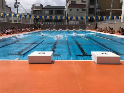 本日の2時間目から4時間目に2年生の水泳大会を行いました。梅雨とは思えないほどの良いお天気になりました。