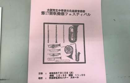昨日7月15日の海の日に、吹奏楽部は阿倍野区民センターにて行われた、吹奏楽フェスティバルに参加しました。