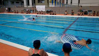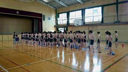 7月17日(水)に1年生水泳大会を行いました。先週の天気予報では、雨も心配されましたが、当日は晴天に恵まれました。個人種目、団体種目とも出場選手はもちろん、応援も全力で頑張っていました。この頑張りを、今後の生活に活かしていってほしいものです。【その1】
