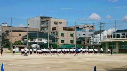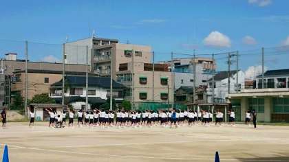 いよいよ、「第72回体育大会」が来週に迫ってきました。9月に入って体育の授業での練習、また、学年練習にも取り組み、今日は1回目の全体練習を行いました。9月に入っても暑い日が続いていますが、当日、最高の体育大会になるように頑張っています。