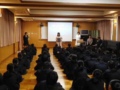 保健委員の司会で始まりました。校長先生からあいさつ・講師の先生のご紹介のあと、学校薬剤師の岡本先生よりスライドやビデオを使って、分かりやすく講話をいただきました。