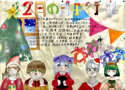 トナカイやサンタクロースなどに扮したキャラクターを描きました。