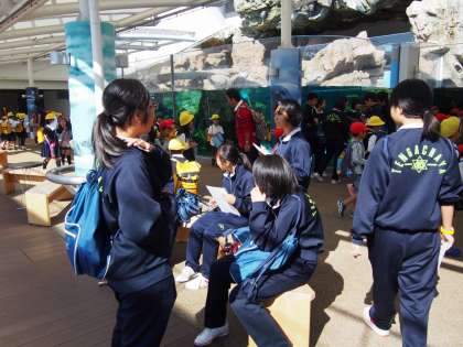 10月24日、2年生が京都水族館へ校外学習に行きました。当日は、修学旅行の練習を兼ねて新大阪駅に集合。現地では、班に分かれて自由行動をしました。生徒が現地で撮影した写真を使い壁新聞をつくり、今後の学習につなげていきます。