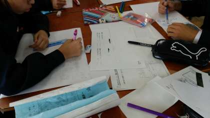 10月30日、2年生では、先日の校外学習のまとめを班学習としておこないました。撮影してきた写真をもとに、班で協力してさまざまなことを調べ、紙面にまとめ文化発表会展示の部で発表します。