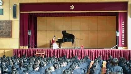 12月9日に芸術鑑賞を行いました。内容は『あきひこさんと楽しむクラシック音楽鑑賞会』というもので、演奏を聴いたり、クイズに答えたり、一緒に歌ったりと、全員が参加することのできる鑑賞会でした。