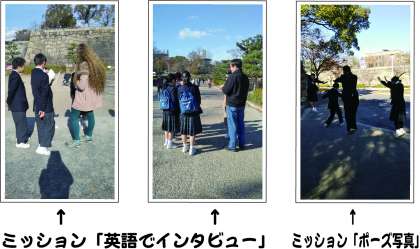 本日1年生は、校外学習で、大阪城公園にてフィールドワークを行いました。班で協力して、さまざまなミッションに挑戦しました。