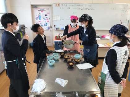 予定では10時半頃に試食だったところ、予定よりも早く盛り付けをして試食をしていました。
