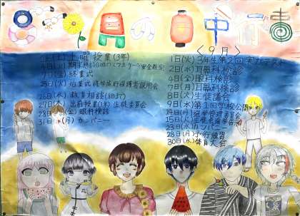 美術部では、今回8月と9月を合わせた月中行事予定表を制作しました。