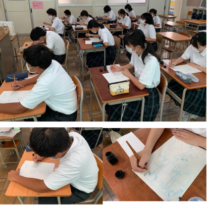 マンガ・アニメーションでは、編集社の裏話なども聞きながら、Gペンとインクを使って実際にマンガを描いていました。最後はアニメーターのたくさんの資料を紹介してもらい、普段手に取ることのできない貴重な資料を見てとても喜んでいました。
