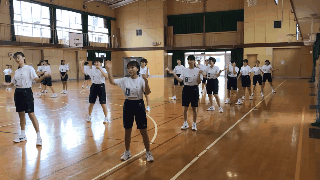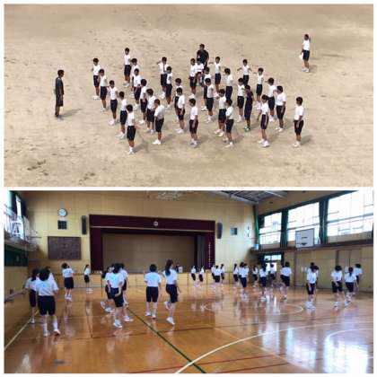 男子は集団演技、女子は創作ダンスに取り組んでいます。まだ練習を始めたばかりですのでうまくいかずに苦労しており、一つ一つの動きを止めながら練習に励んでいます。