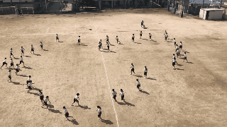 女子は運動場で、隊形移動の練習をしました。最後は音楽をかけて隊形移動の確認をしながらダンスも踊っていました。