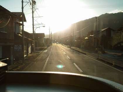 飛騨の里での体験活動が終わって、クラスごとの分宿先に向かっています。