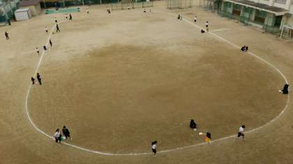 写真上:1年生男子の授業風景(柔道、受け身の練習)
