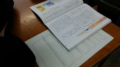 2年生は、落語家の桂 小金治さんの「努力の上に辛抱という棒を立てろ」という読み物をもとにした授業をおこないました。